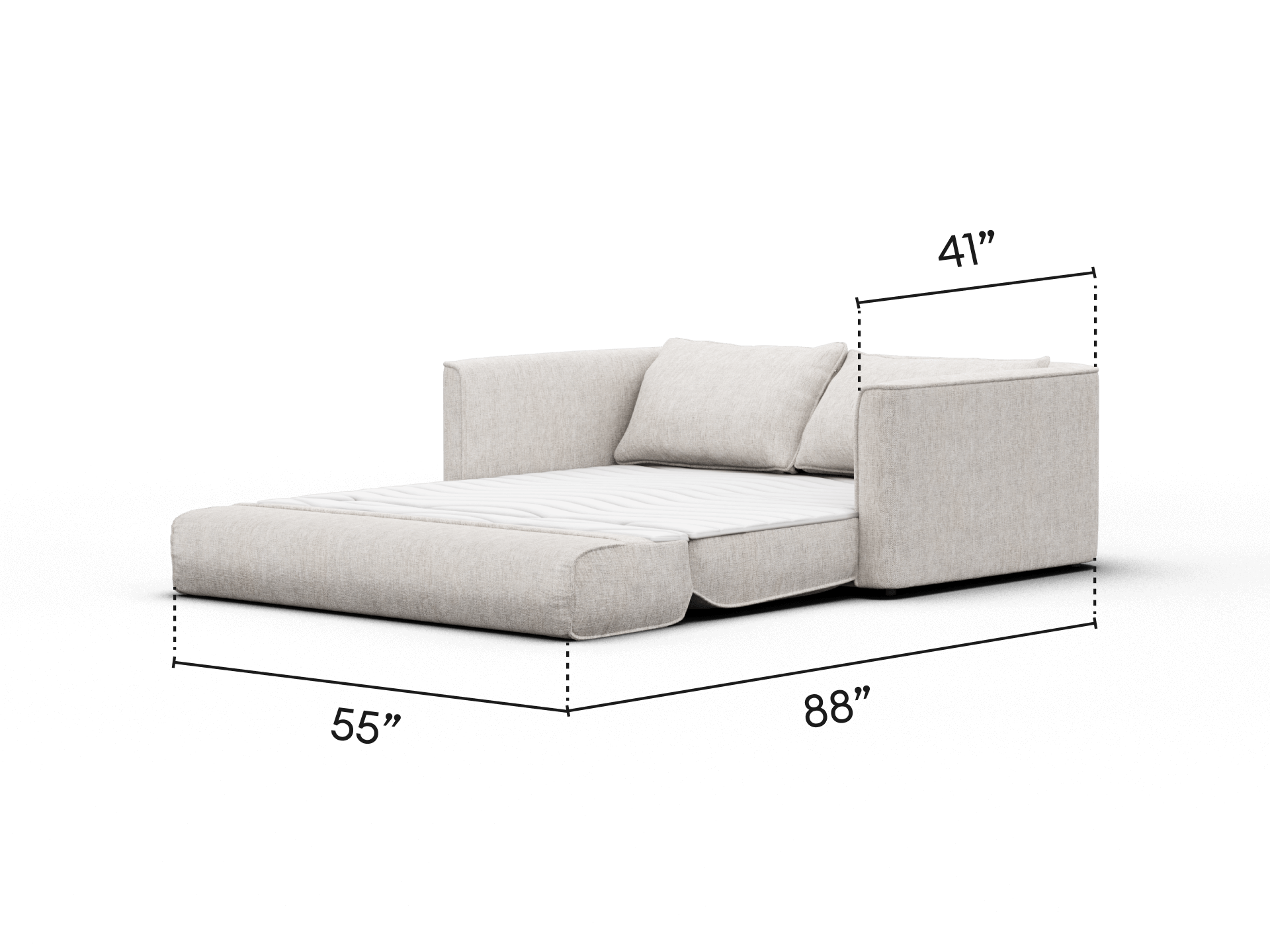 No air beds. No springs. No compromises. Our signature mattress with Kloudcell™, motion-isolating support, a washable topper and cushions so comfy guests won’t believe it’s a sofa.